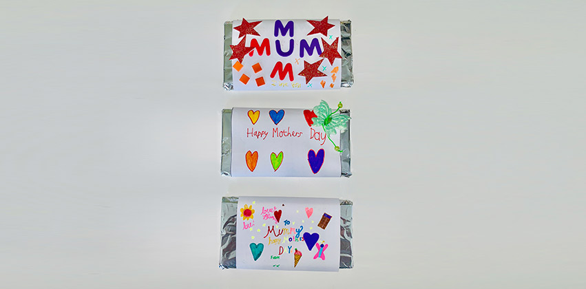 This then led to a ‘light bulb’ moment and it was suggested to the students that they make their own chocolate bars using special moulds and then design a personalised wrapper for their Mummy’s.