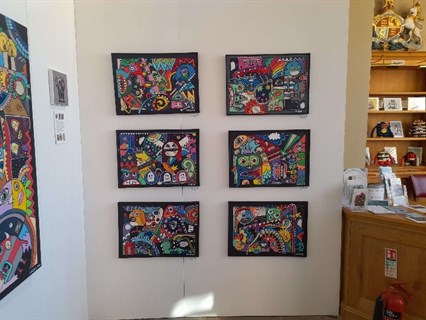 Once inside students were greeted by and introduced to Sarah who spoke briefly before students explored the various Monster themed works. The artworks themselves were at least 40 by 60cm’s in size, many much larger, and consumed the students in a colourful and playful world of arrows, faces, eyes, cats and so many other items it’s impossible to list them all.
